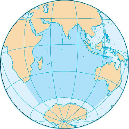 3. Индийский океан — третий по размеру (20 %) океан Земли. Ширина Индийского океана составляет приблизительно 10 000 км между южными точками Австралии и Африки.