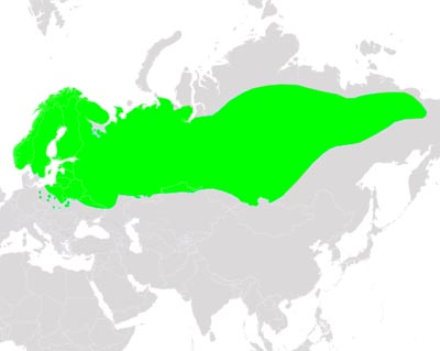 Обитает в Сибири на восток до Забайкалья. Зимует в Средней, Центральной и Южной Азии.