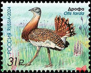 Дрофа (Otis tarda), самая массивная птица России, и одна из самых тяжёлых летающих птиц планеты. Самцы вдвое тяжелее самок: их масса составляет 7—16 кг при длине до 105 см. В XIX веке эта птица в России считалась популярным объектом охоты.
