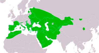 Гнездится в Северо-западной Африке, в Южной и отчасти в Центральной Европе, на Кавказе, в Малой Азии, на Ближнем Востоке, Средней Азии и Казахстане, Юго-Западной Сибири, севере Монголии, на юге до Пакистана и Индии.