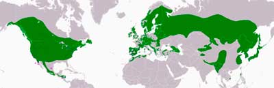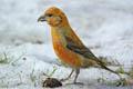 Белокрылый клёст.Обитает главным образом в российской тайге, Скандинавии и Северной Америке.
