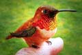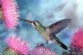 Длинна самой маленькой колибри 5,7 см, вес - 1,6 г. Колибри происходят из Америки (от Южной Аляски и Лабрадора до Огненной Земли). Оперение многих колибри отличается чрезвычайно яркими цветами и металлическим блеском. Известно более 300 видов колибри. Колибри - единственная в мире птица, способная летать назад. Колибри отличаются от других птиц длинным тонким клювом и длинным, глубоко раздвоенным языком, который может далеко выдвигаться изо рта.