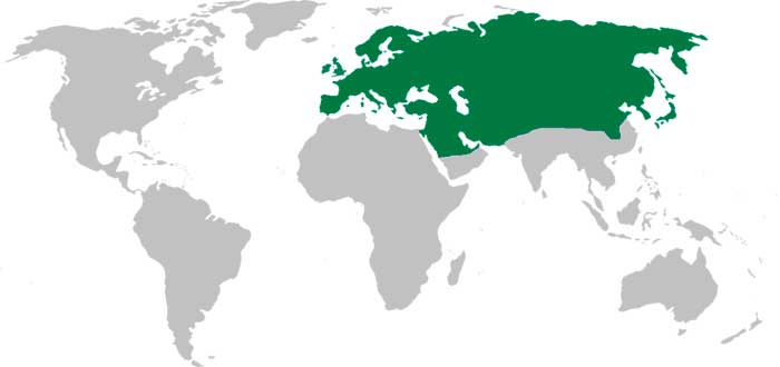 Внетропическая Евразия (включая всю территорию России), северная Африка, острова Атлантического океана, север Америки, Гватемала, Гаити